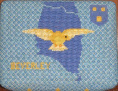 The kneelers at the altar rail recall the RAF at Thorney Island, in embroidery. RAF wives created a record of the squadrons and aircraft serving in the 1960's in a very practical and functional way. A framed dedication of these can be found on the wall of the Chancel.